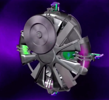 環(huán)缸式圓形轉(zhuǎn)子發(fā)動(dòng)機(jī)的氣缸為中空?qǐng)A輪環(huán)形,異形連桿斷面呈“S”形,氣缸通過左右氣缸座、軸承與中央軸連接呈游離狀態(tài),異形連桿也通過一對(duì)軸承與左右汽缸座固定呈游離狀態(tài),右氣缸座上固定有中空傳動(dòng)輪,輪內(nèi)設(shè)置有行星齒輪與凸輪機(jī)構(gòu)